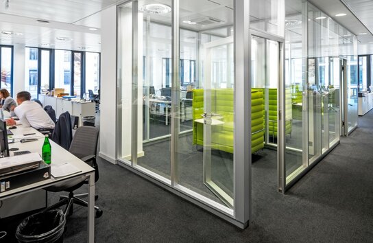 - Helle und lichtdurchflutete Büroflächen durch bodentiefe Fenster; hoher Bürostandard mit innovativer technischer Ausstattung
